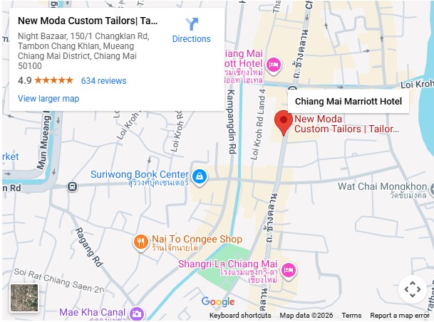 Located in the heart of Chiang Mai, New Moda Tailor is a top-rated bespoke tailor in Chiang Mai trusted by travelers, expats, and professionals seeking custom-made suits, tailored shirts, and premium tailoring services. From personalized style consultations and precise measurements to convenient fittings arranged at your hotel or residence, every detail is handled with care. Experience high-quality bespoke tailoring in Chiang Mai with perfectly fitted garments crafted from premium fabrics and delivered with ease where expert craftsmanship, modern style, and convenience come together seamlessly.