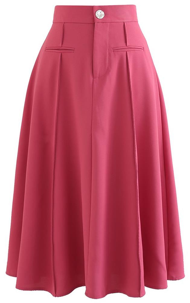 The midi skirt falls between the knee and ankle, creating a balanced and graceful look. It pairs well with blouses and jackets for both professional and everyday outfits.