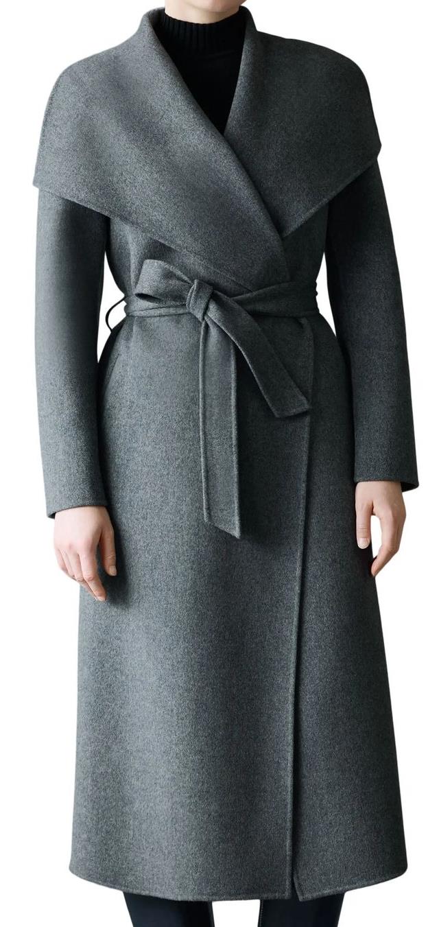The wrap overcoat for women features a belt closure that enhances shape while providing comfort and warmth. It is perfect for both casual elegance and refined winter outfits.