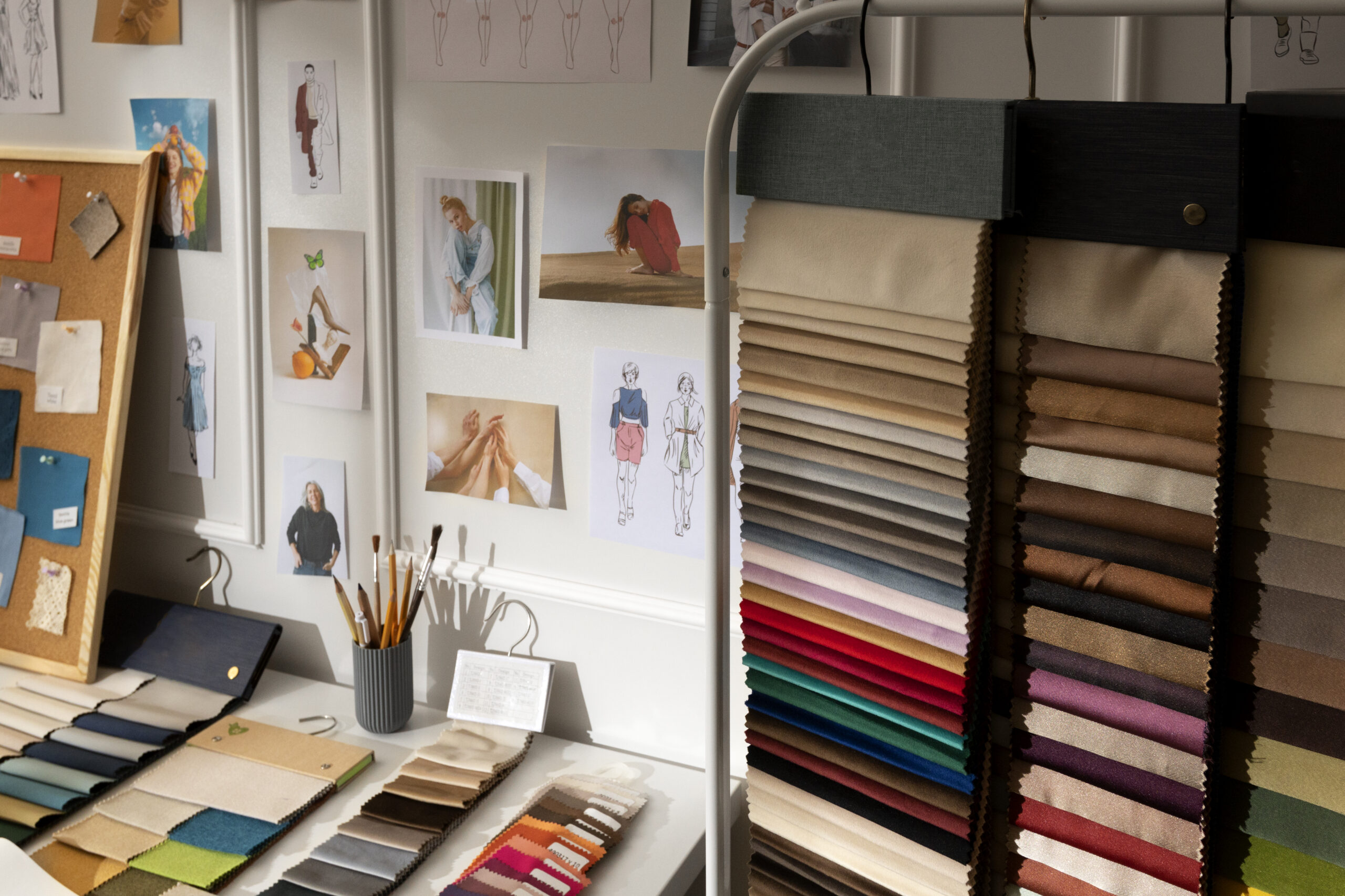 Pre-selected fabrics available instantly for efficient same-day tailoring.